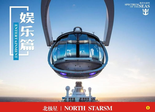 剛剛結(jié)束了岸上觀光, 您有點(diǎn)兒累了?那選擇皇家海洋光譜號上的【南極 球】感受離開地心引力的刺激, 或者去【皇家大劇院】看一場頂尖的經(jīng)典歌舞 表演吧,讓您在船上就能看到正宗的百老匯表演。還可以靜靜的在【日光浴場】 享受一個悠閑的下午, 或者和愛人去【悅音廳】靜聽藍(lán)調(diào)布魯斯的悠揚(yáng), 漫步 舞池!晚上的【 270°觀影廳】會為大家提供全息數(shù)碼投影, 讓乘客體驗引人入 勝的跨界表演和燈光秀。還可以參加船上的各種娛樂活動、興趣課程、健身運(yùn) 動、游泳、沖浪、登上北極星等。還可以看電影、或者到娛樂場開心一把。