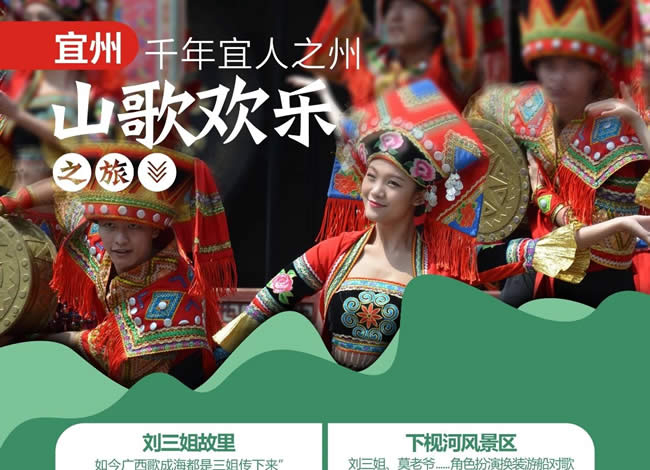 早餐后,乘車前往宜州國家AAAA級景區(qū)【劉三姐故里】景區(qū)包括龍江河、下枧河、流河寨、壯古佬、寨中保留有劉三姐故居、阿牛哥家、王媒婆家及劉三姐歌臺(tái)等,寨門有壯妹山歌迎賓,還有實(shí)景演出,是一個(gè)充滿民俗特色的旅游景區(qū)。下枧河是到達(dá)劉三姐故居的之地,兩岸青山綠水,河道中還有較多巖石,仿若“水上石林”。船 行其上時(shí),還會(huì)時(shí)不時(shí)飄來山歌,非常有意思。到達(dá)流河寨,方可一探寨內(nèi)的劉三 姐故居。在下枧河與龍江河的交匯處有一塊“望妹石” ,相傳劉三姐掉下山崖后,阿牛哥總是站在這里癡癡地望著,希望能看到劉三姐平安歸來,后人便把他站的這塊石 頭叫做“望妹石”。乘船穿梭在河中,劉三姐與阿牛哥劃著小舟,唱著山歌的情景便不禁浮現(xiàn)。宜州是著名壯族歌仙劉三姐的故鄉(xiāng)。